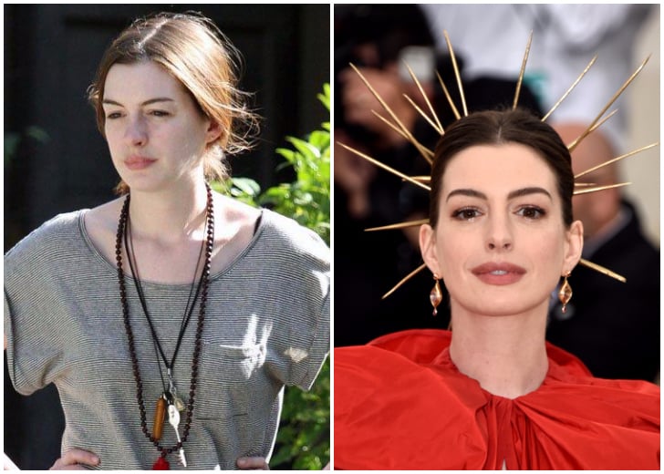 If you bumped into this Les Misérables star grocery shopping, you would need to do a double take to know that you just saw Anne Hathaway! Wearing just her smile on her face, looking happy being less-than-glamourous actress is gifted with beautiful skin and glow. The media photographers have snapped her plenty of times sans makeup going to the pharmacy, hitting day care and squeezing in a work out at a gym. Also, her simple dresses help her blend in even more with us commoners!