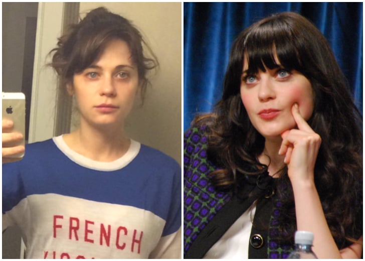They say that foundation and makeup in general, is supposed to take years off someone’s face, but in the case of 500 Days of Summer actress, Zooey Deschanel, she ends up looking younger without any! From shining in comedy TV shows and dramatic movies to her real life, the star seems to have developed some sort of glow that emanates from her face, too. With her make up on, she can surely be the poster girl of any beauty school, but Zooey prefers to lay it all bare with her fans and often shares makeup-free photos of herself, letting us all know that she’s not flawless. To us, she is!