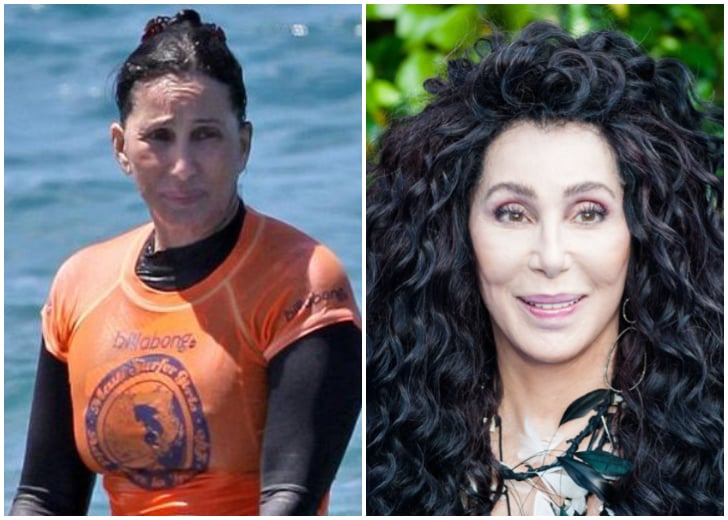 But we can’t expect the diva to always be layered in foundation, especially when she’s out taking surfing lessons on the beach. The photographers present took many shots of her paddling and riding the waves, barefaced and we have to say, she looks very different from the “Cher” we usually see! But, if you consider the fact that she’s in her 70s, she’s doing much better than we hope to at that age!
